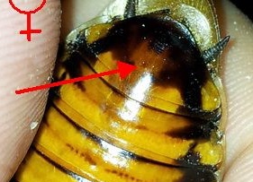 Приятный внешне, но не очень крупный вид. Длина тела имаго составляет порядка 5 см, ширина в пределах 2 см. Внешне отличить самцов от самок проблематично, т.к. половой диморфизм прослеживается крайне слабо, и различий практически нет. Но, как и у других видов яйцеживородящих тараканов, их последний стернит (сегмент брюшка) различен у самок и самцов. А именно: у самок последний сегмент брюшка широкий и удлинённый (как два сросшихся вместе), у самцов же он узкий и короткий. Надеюсь, с иллюстрацией всё станет понятней (самка слева, самец справа):